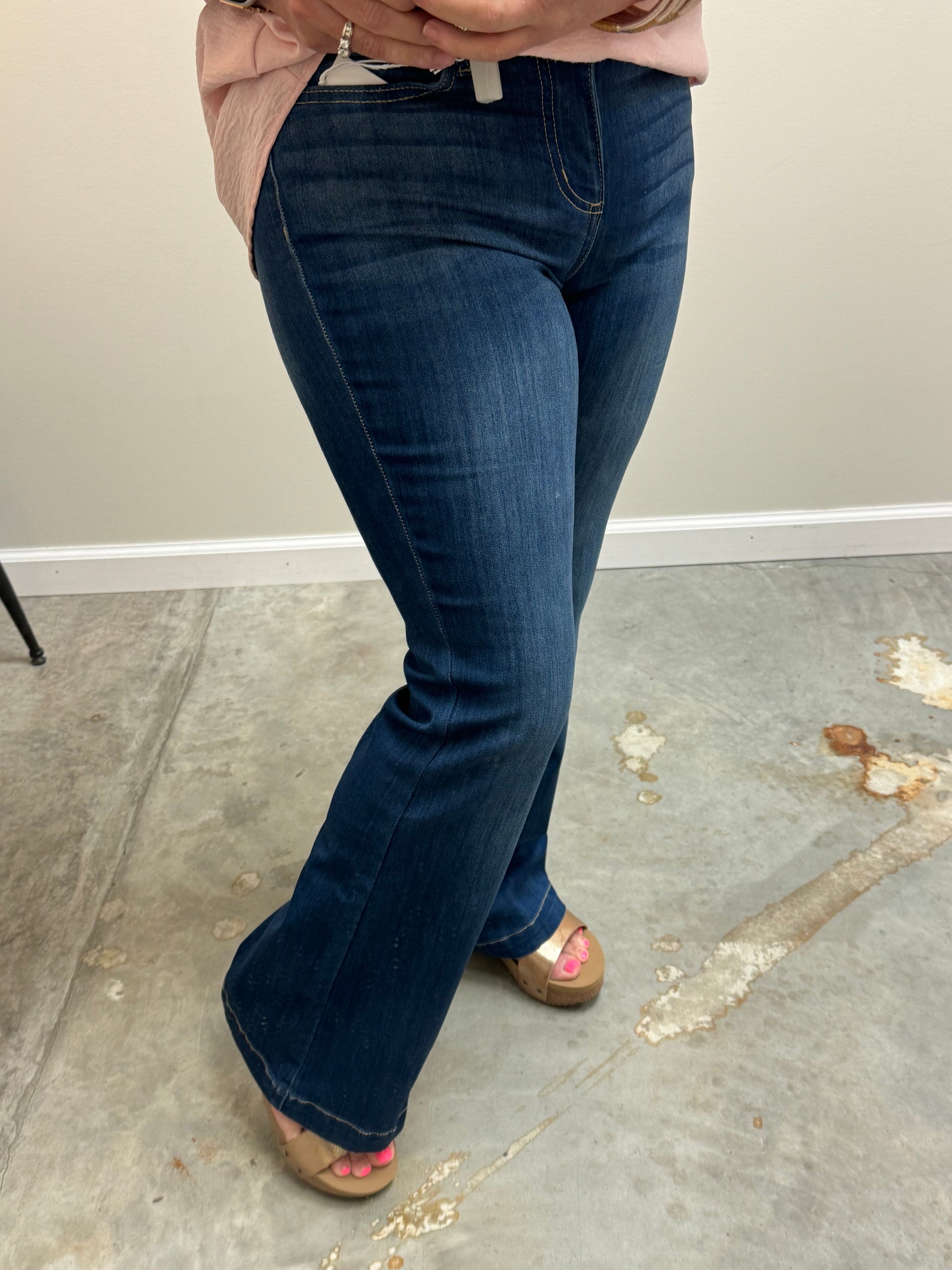 These Petite length Medium Wash flare jeans are our best seller! This flattering flared, bootcut style offers the comfort of jeggings with the trendiness of stylish flared .These have a 30” inseam, which is perfect for all our petite ladies!