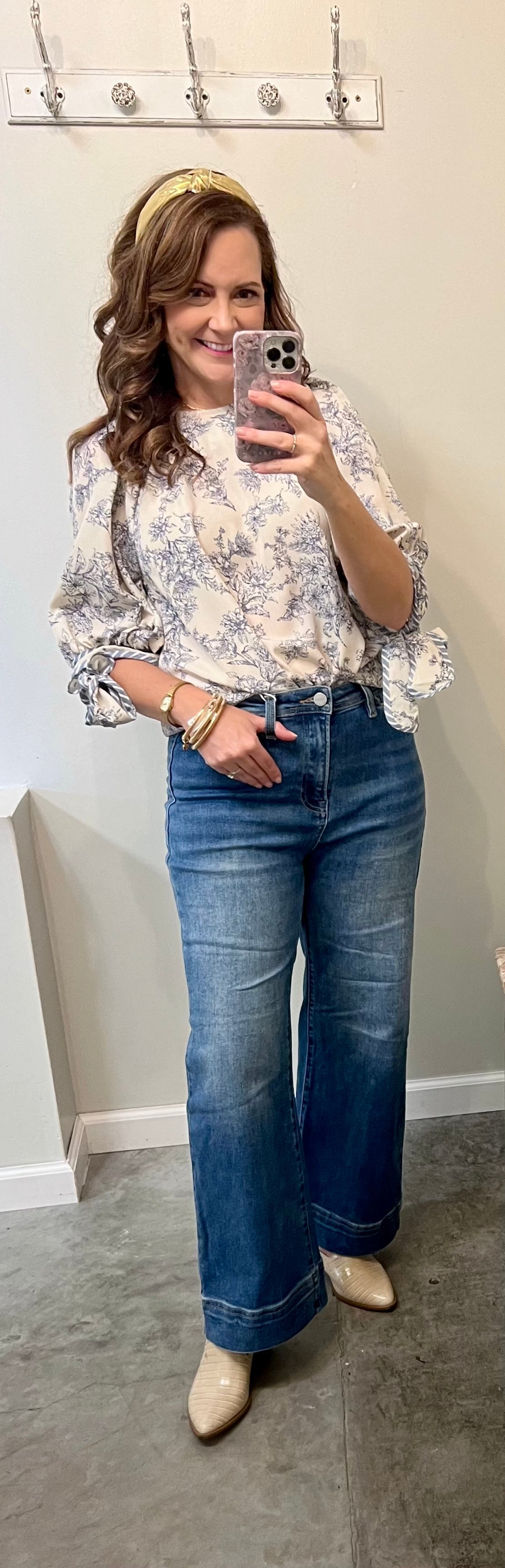 Get ready to elevate your denim game with Sadie's Medium Wash Crop Wide leg Jeans. Designed with a medium wash and wide leg crop style, these jeans offer a versatile and on-trend addition to your wardrobe. Stay comfortable and stylish with this must-have piece.
